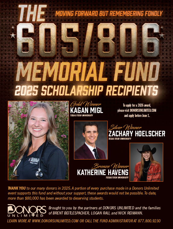 CONGRATULATIONS to these winners for their scholastic and extracurricular excellence. The 605/806 Memorial Fund is proud to assist these future agricultural leaders as they pursue their dreams.